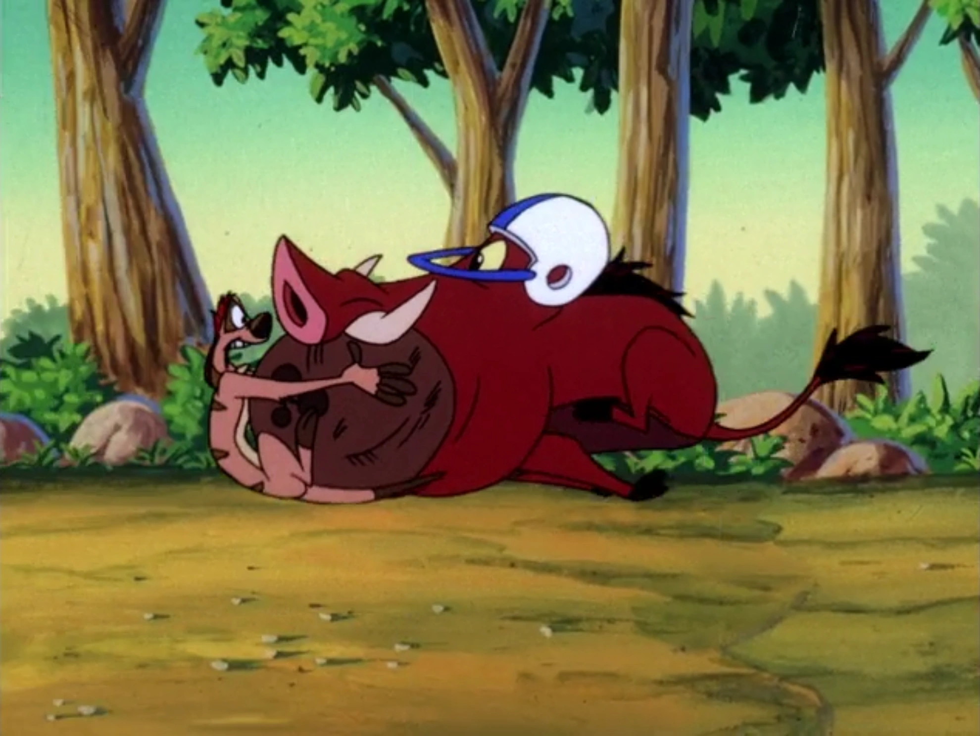 Pumbaa plays Coconut Football in order to feel young again.