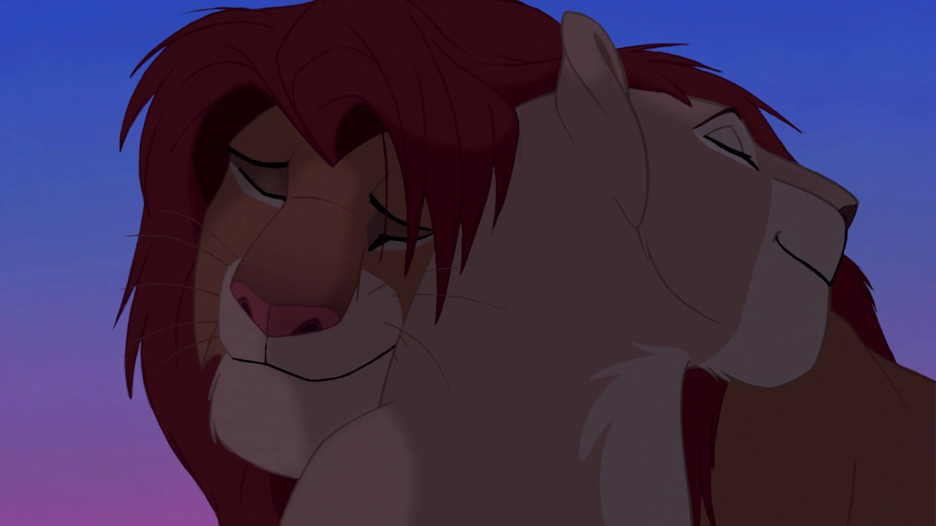 "Can You Feel the Love Tonight" is the last song heard in The Lion King. It begins shortly after Simba and Nala reunite as adults and find that their friendship has blossomed into love. As the two stride off into the jungle, Timon laments to Pumbaa that Simba will no longer be a part of their friend trio. Meanwhile, Simba and Nala spend a romantic evening together in the jungle, which culminates in Nala licking Simba's cheek and the two embracing. Timon and Pumbaa then sob over the loss of their "carefree days" with Simba.[19]