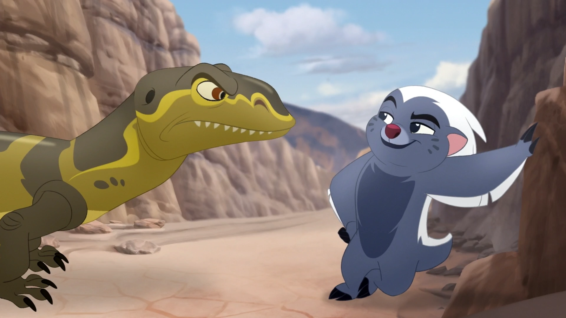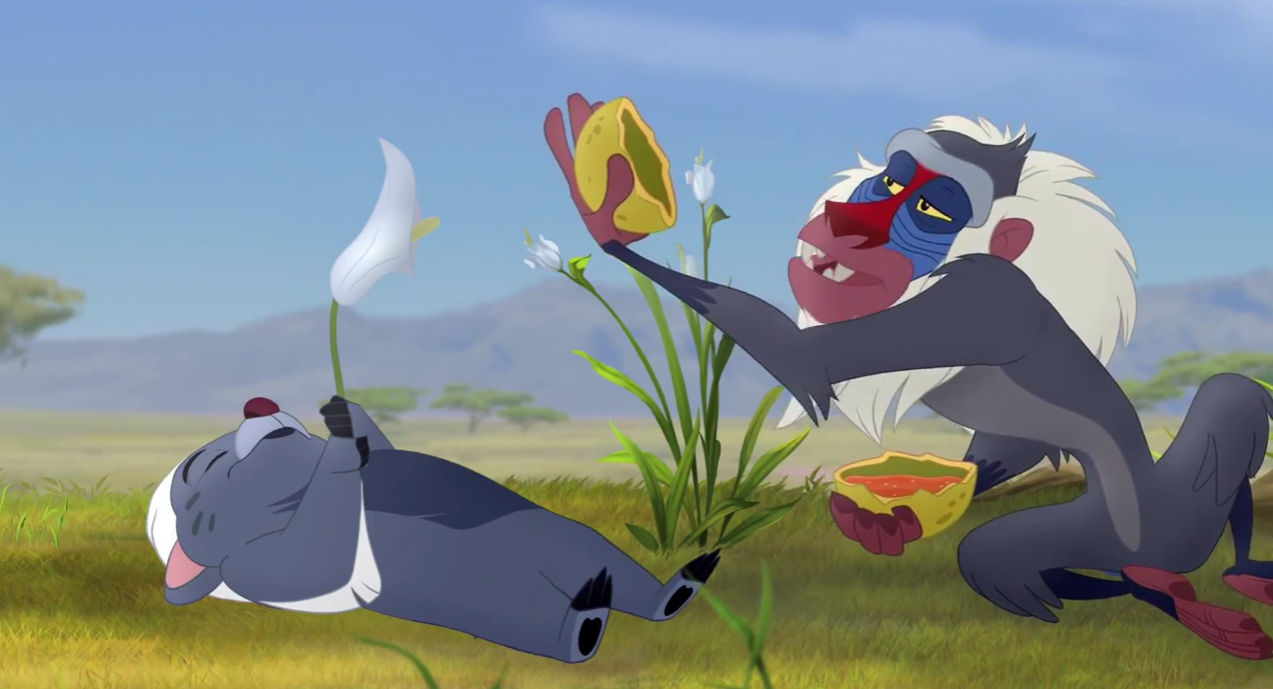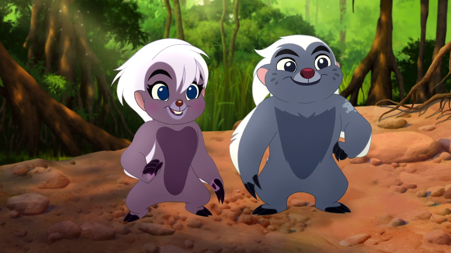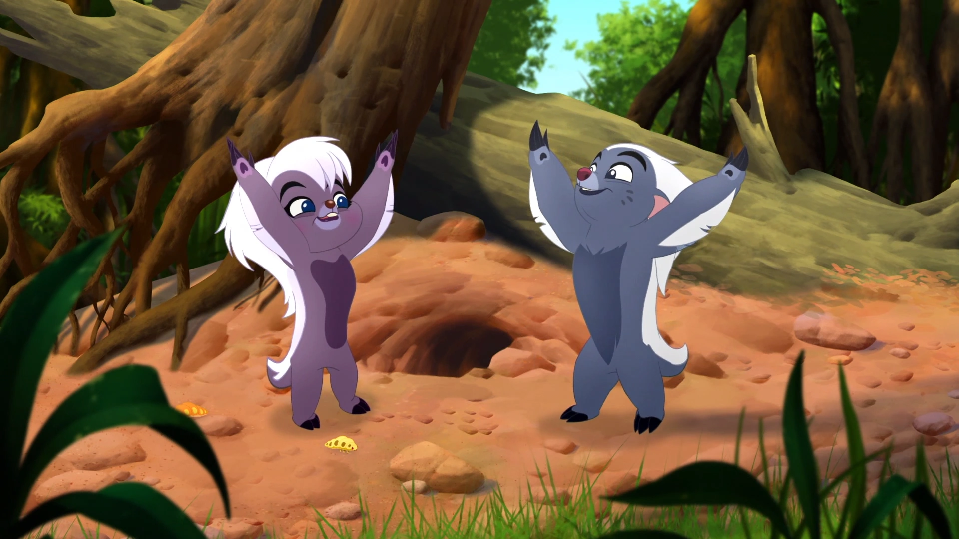 Later, Binga beat Bunga in a stink competition. He challenged her to more and more contests, but she continually bested him. In spending so much time together, the two began to develop romantic feelings for one another. Shortly afterward, the Lion Guard approached, and Bunga introduced them to Binga.