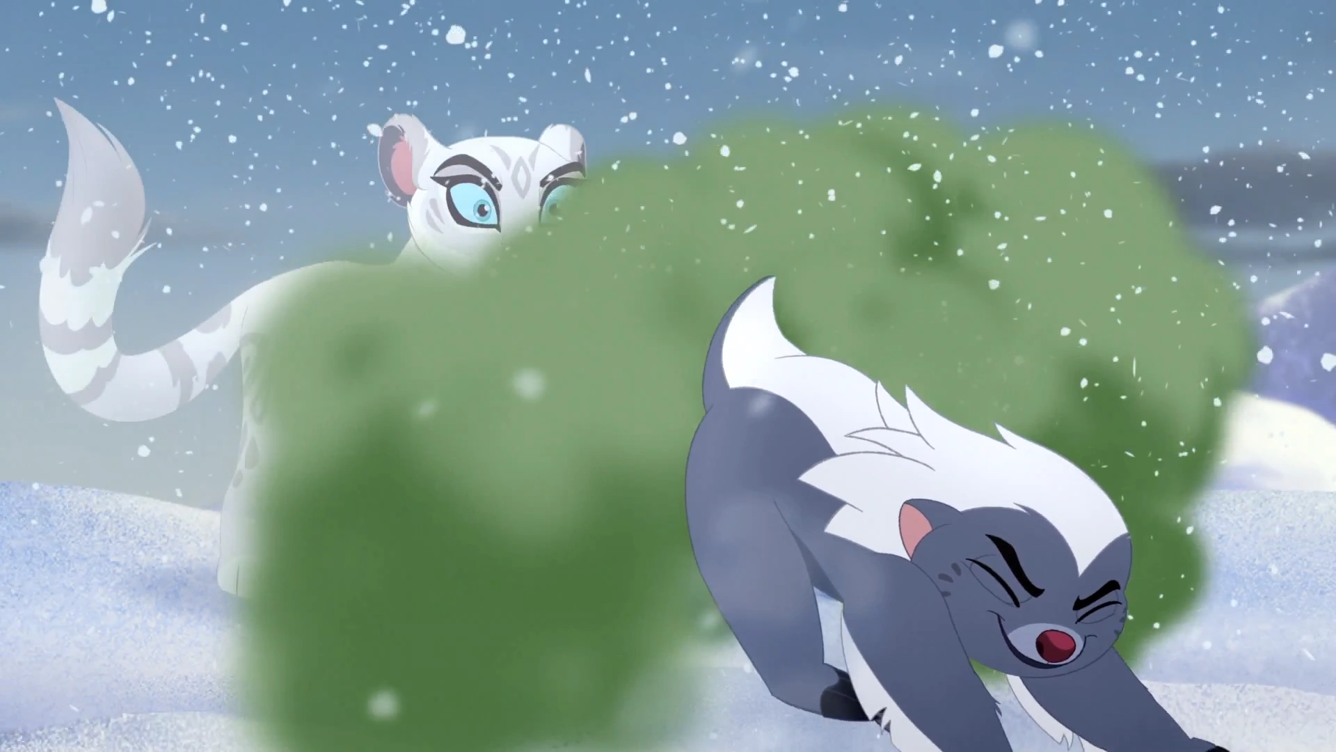 Together, the Lion Guard labored up the mountain, where they figured out that the "ghost" was a snow leopard named Chuluun. Though Chuluun tried to escape them using her camouflage abilities, Bunga tackled her and covered her in the orange paint that the red pandas had slathered on his fur. Chuluun then fought him off and escaped. Shortly afterward, the Guard heard fearful cries in the distance, and Anga spotted Chuluun, marked by Bunga's orange paint, attacking Domog's pack. The team raced to the rescue, only for Chuluun to evade them once more.