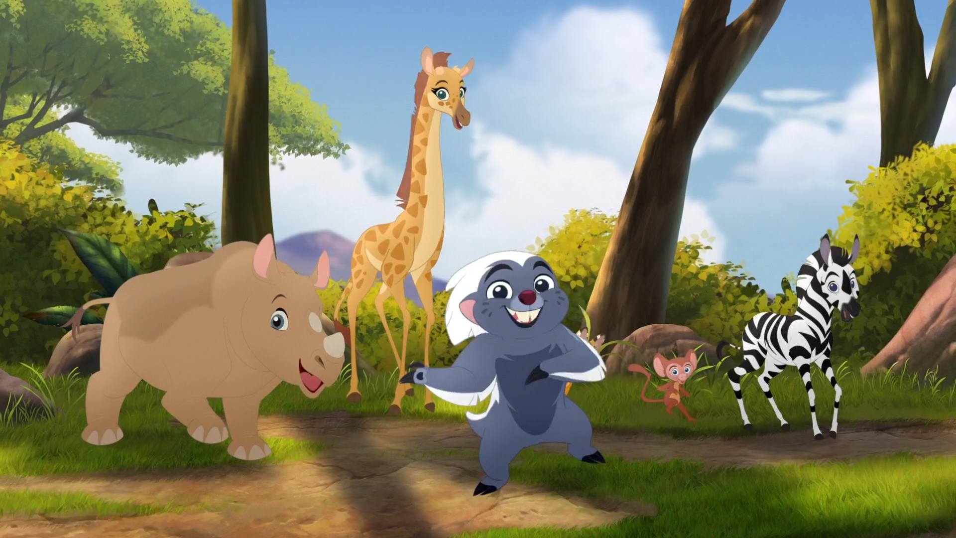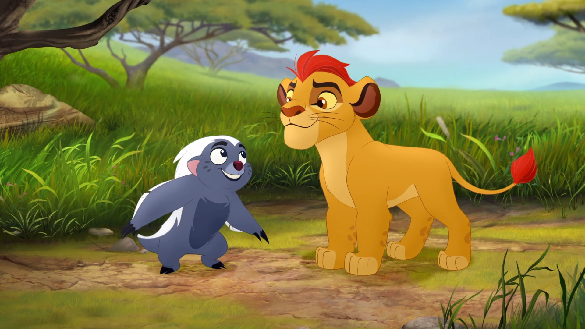 At that moment, the friends overheard Zuri crying out for help and followed her voice to where her claws were stuck in a log. Timon and Pumbaa managed to free her, after which Bunga told them about his appointment to the Lion Guard. Though they were at first worried about Bunga's safety, they gave in when Kion called Bunga "the bravest animal" he knew. With Timon and Pumbaa's blessing, Kion and Bunga left to collect their next recruits: Beshte, Fuli, and Ono.