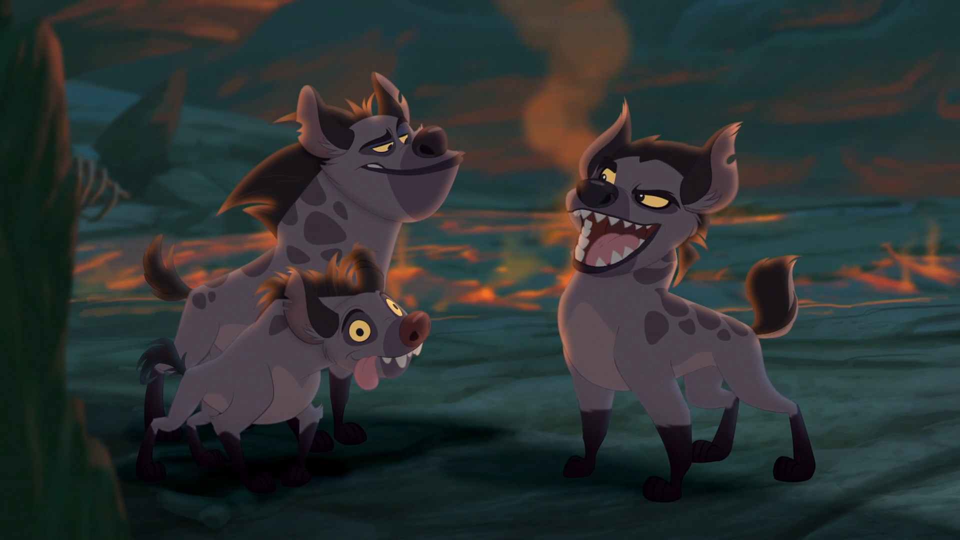 Afterward, the hyenas and jackals reported to Scar on how the Lion Guard had handled the double Outlander attack. He, in turn, ordered them to attack Rafiki, the Pride Lands' knowledge-keeper. Though Janja and Reirei bickered over who should lead the mission, Scar put Janja in charge and promised to let Reirei take point next time. Once they had left the volcano, Janja bragged to Reirei that Scar had chosen the hyenas for the mission over the jackals, and the two groups argued over which of their species was smarter.