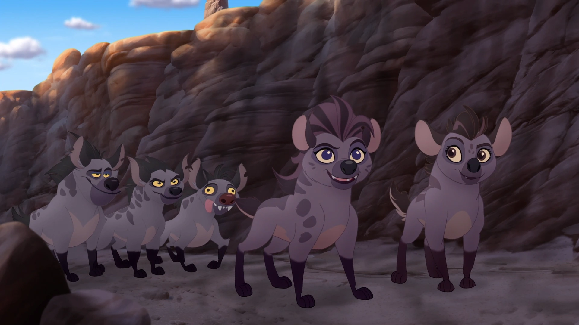 One day, Janja and his clan attempted to ambush a herd of wildebeests in the Pride Lands, but the Lion Guard intercepted them, and Kion blasted them away with the Roar of the Elders. Once in the Outlands, Janja blamed his failed plan on Cheezi and Chungu, and banished them from the Outlands. Recruiting Nne and Tano in their place, he ordered them to drive his old minions away, and Cheezi and Chungu fled to the Pride Lands.