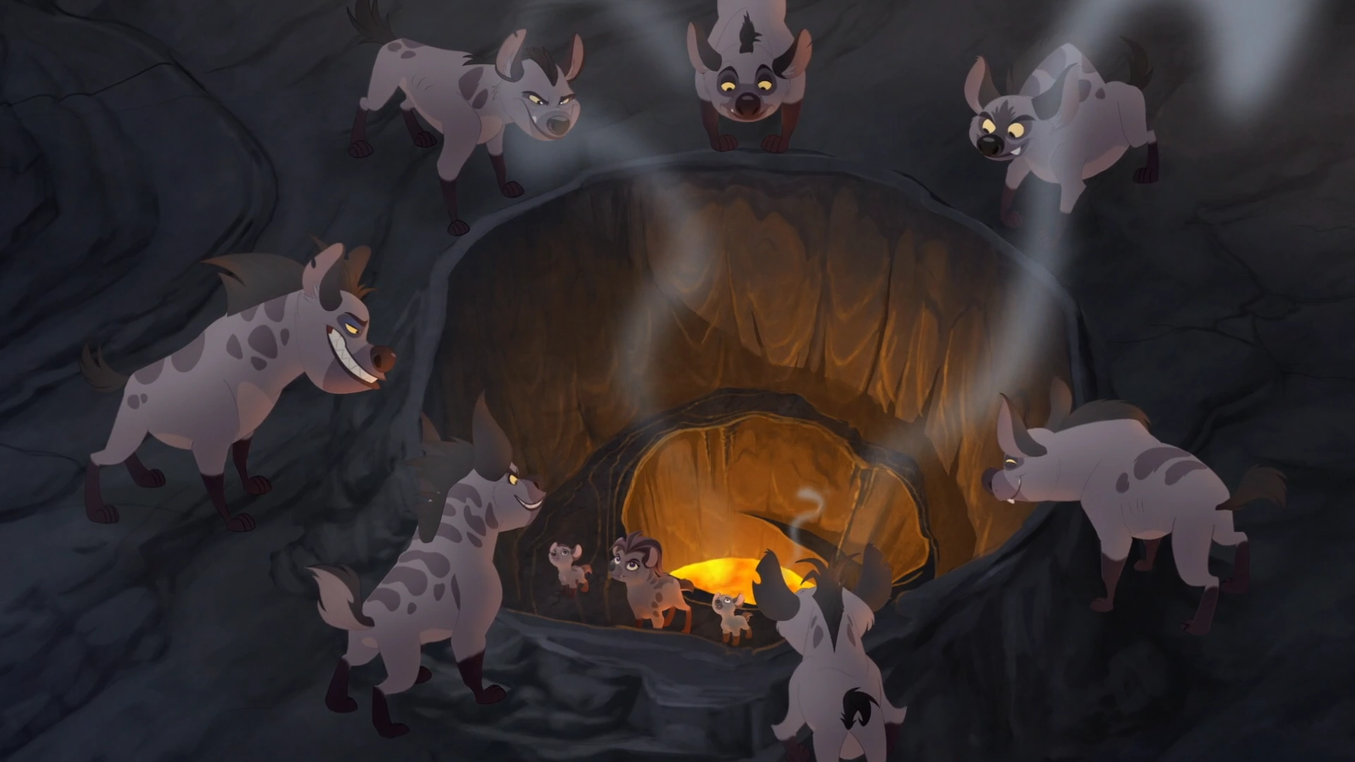 That night, Janja's clan baited the Lion Guard into following them into the Lair of the Lion Guard. At the same time, the rest of Scar's army set fire to Pride Rock, trapping both the Guard and Janja's clan inside the Lair. After managing to escape, Janja realized that Scar had double-crossed them and appealed to Jasiri for help. At the same time, the Guard helped the other hyenas escape through an underwater tunnel.