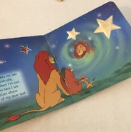 "Simba, Pumbaa, and Timon stare up at the beautiful starry night sky. Full color. 5 spreads."[1]