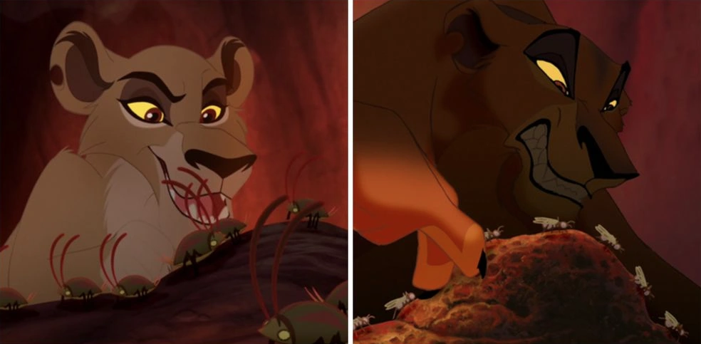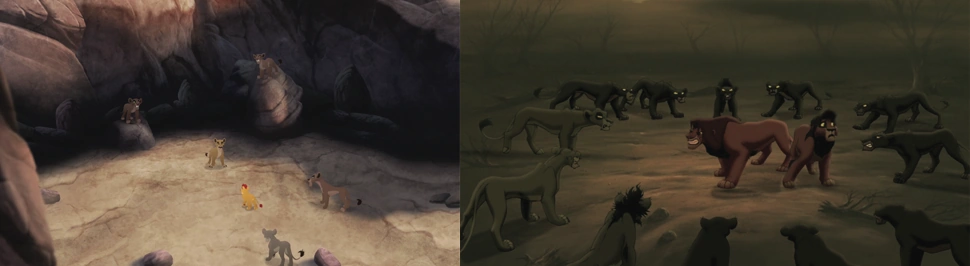 Zira surrounds Kion with her Outsiders in order to intimidate him into joining her cause over Jasiri's.