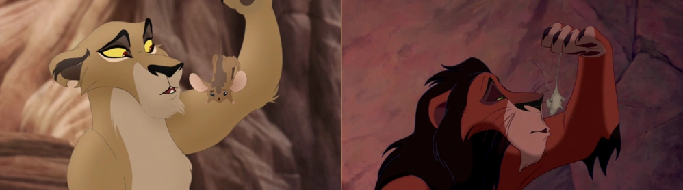 Meanwhile, Nuka loses patience waiting for Zira and tries to attack Jasiri. When Kovu steps in the way to mediate, Jasiri comments that whatever game Nuka wants to play, she can play better. Antagonized, Nuka moves forward to attack, but is called off by Zira. She explains to Jasiri that she and Kion have come to an agreement that the watering hole belongs to lions only, which prompts Jasiri to retort that Kion would never agree to such a thing. Zira simply says that lions must stick together and intimidates Jasiri into leaving the watering hole.