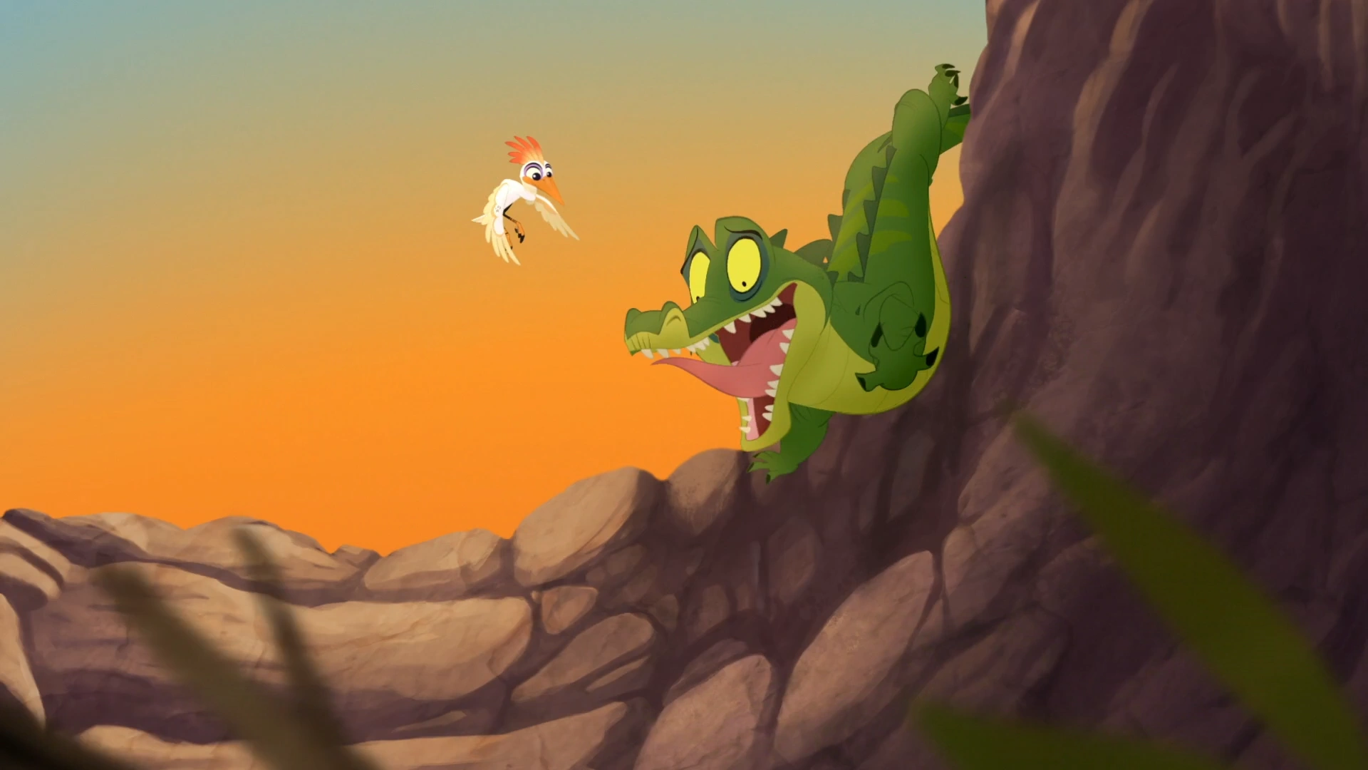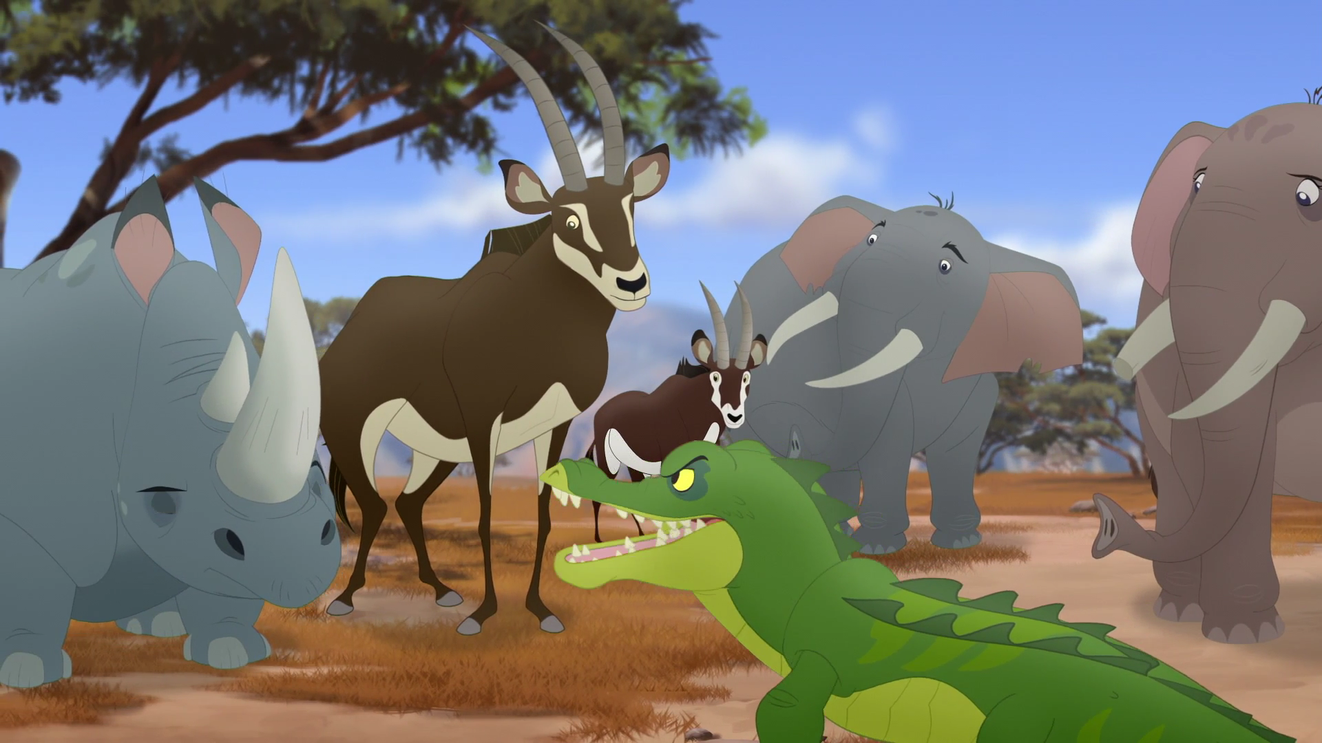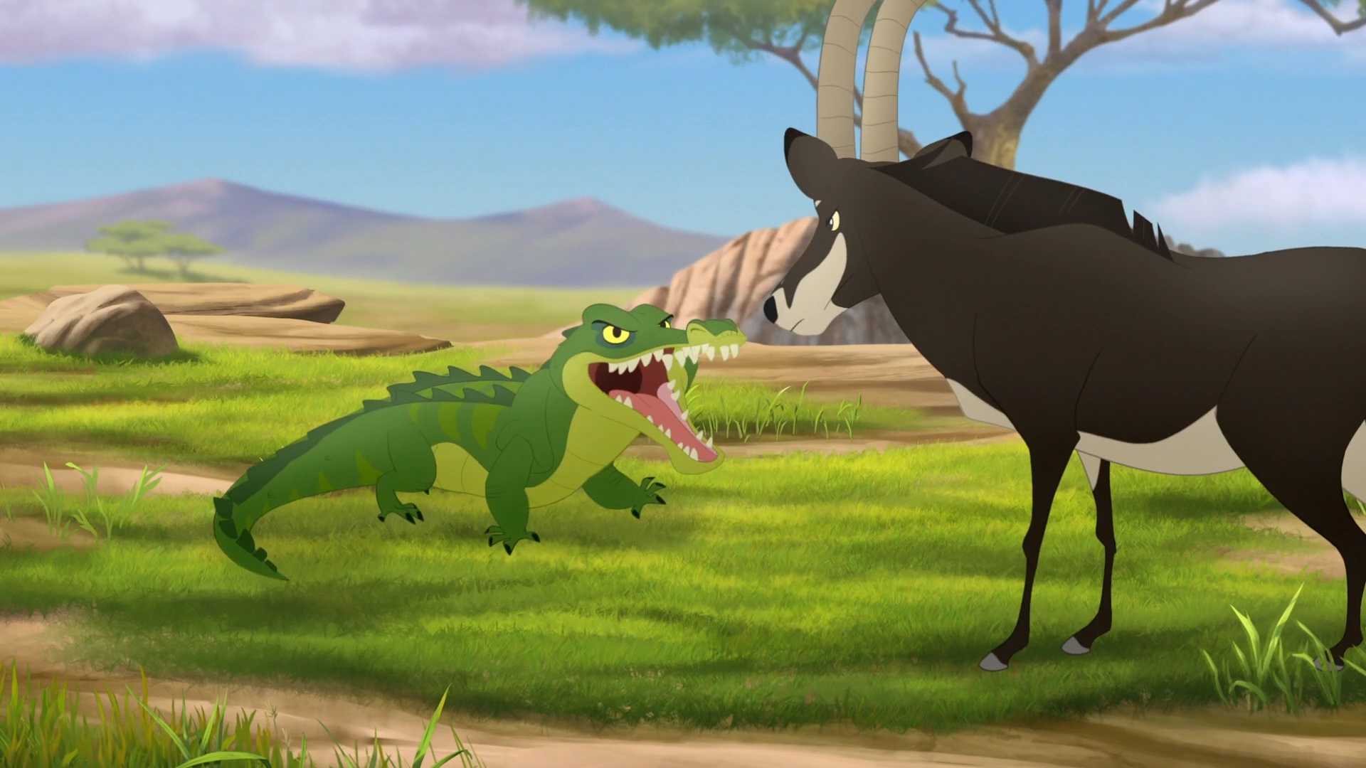 Just then, Ono spotted a herd of cape buffalo stampeding toward the crocodiles, and Kion yelled for the float to take cover. Though the crocodiles managed to reach safety on a nearby cliff, the stampede caused a rockslide, which injured Makuu. Despite his injuries, Makuu insisted that he was fine and continued to train his float.
