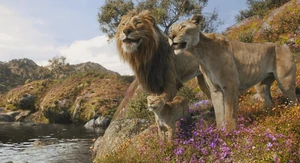 "Milele" is the second of seven songs to appear in Mufasa: The Lion King. It begins when Mufasa's parents, Masego and Afia, tell him that they will someday reach the fabled paradise known as "Milele." As Masego and Afia describe Milele, Mufasa has a vision of a savanna oasis bountiful in water, plants, and food. Eventually, the vision comes to an end, as does the song.[5]