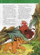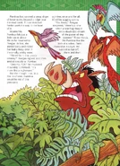 Mr. Perfect begins by introducing Simba, the self-exiled prince of the Pride Lands, and his two friends, Timon and Pumbaa. At the start of the story, the three friends are attempting to fell a tree in the hopes of finding grubs. While Pumbaa and Simba slash at it with their tusks and claws, Timon sits by lazily, yelling encouragement at his friends. At last, the tree falls, but as it drops to the ground, dirty water from within its trunk washes over the three friends.
