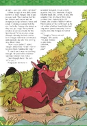 Furious at Pumbaa, Simba refuses to help any further. Pumbaa, seeing no other options, begs Timon for help, and the meerkat agrees to get Pongaa off his back.