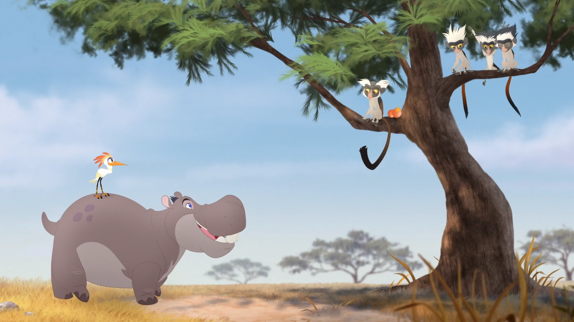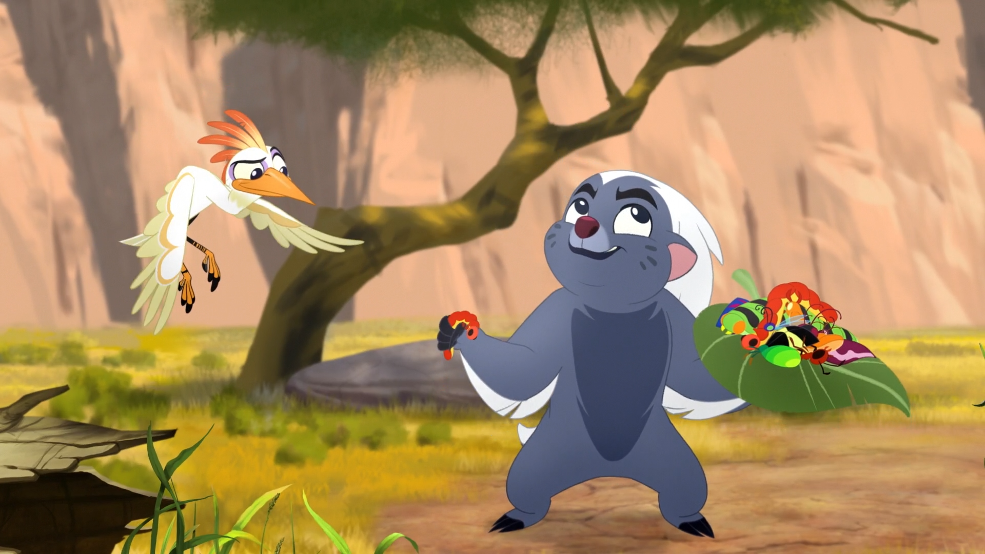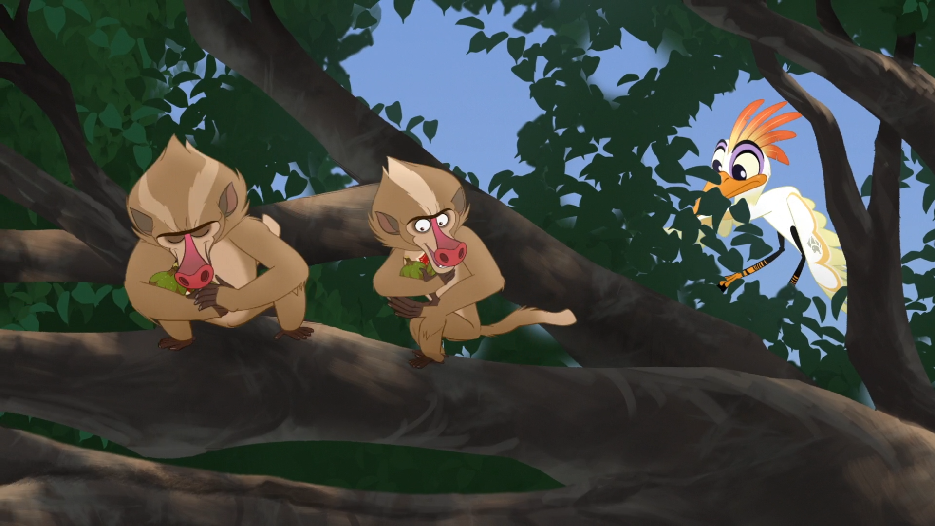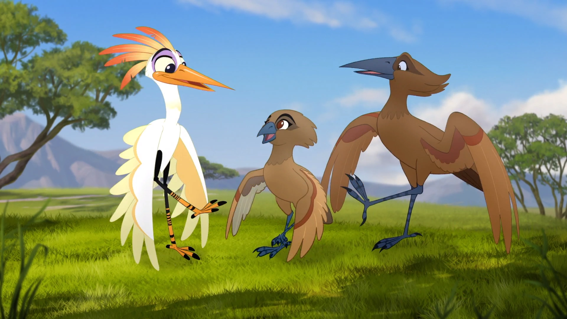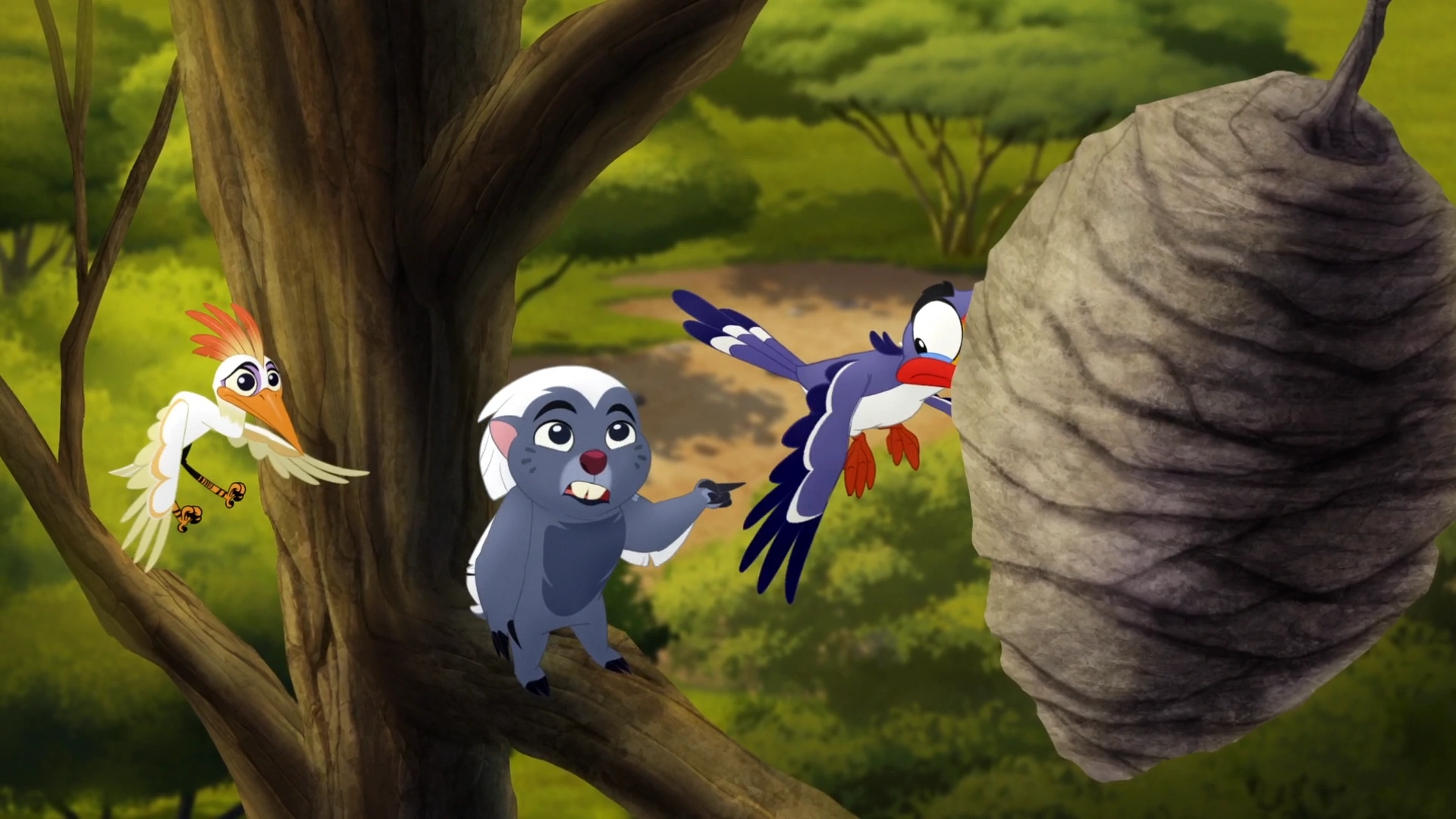 While playing Baobab Ball, Bunga and Kion raced toward Ono's flock. Panicked, Ono warned them to scatter.