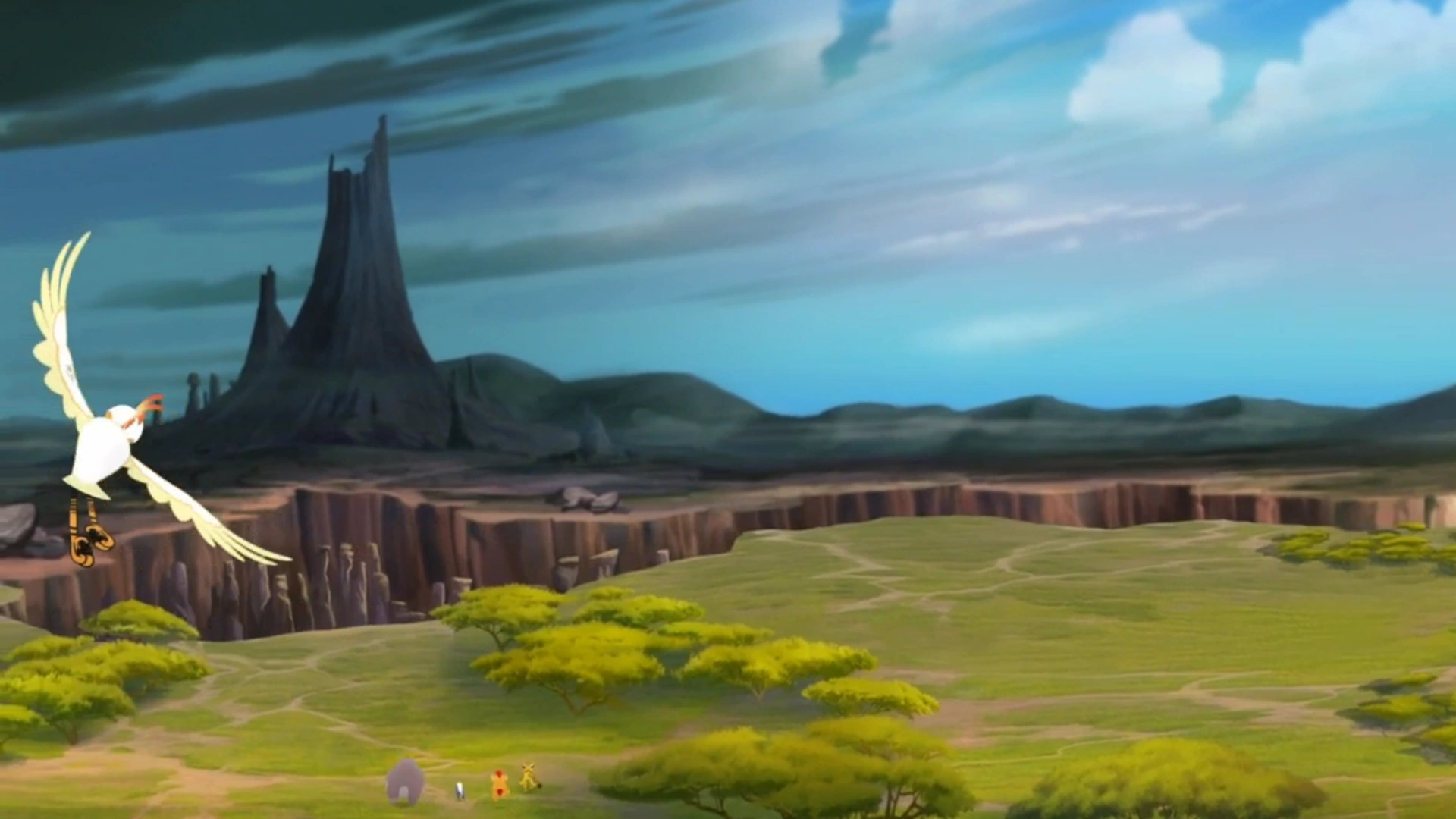 After the rescue, Kion complimented his friends on their teamwork, and Azaad led the group around the Great Stone Wall. Before long, they arrived in the Outlands, where they caught a glimpse of Pride Rock in the distance. They then headed toward the Pride Lands, determined to save their kingdom.[74]