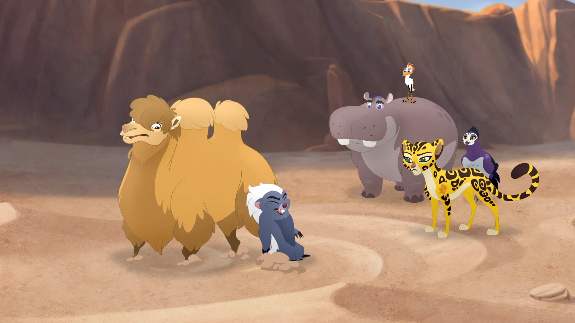 The Lion Guard helps free a camel.