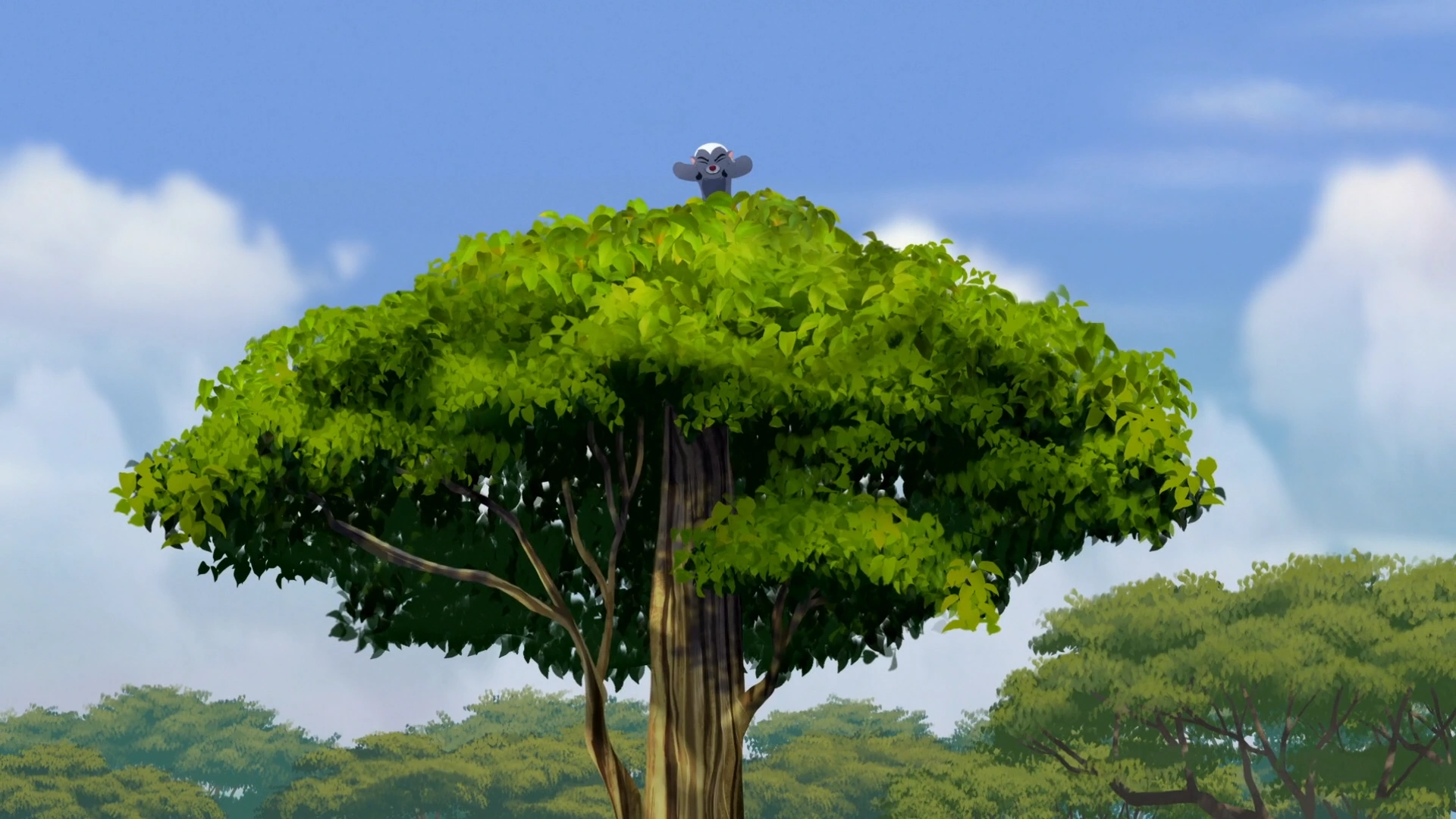 Across the Pride Lands, Kion laments having left Ono behind with Hadithi, as the tallest tree in the Pride Lands is difficult to climb. Bunga volunteers for the task and clambers his way to the top of the tree. From there, he overlooks the Pride Lands and spots an even taller tree across the savanna.