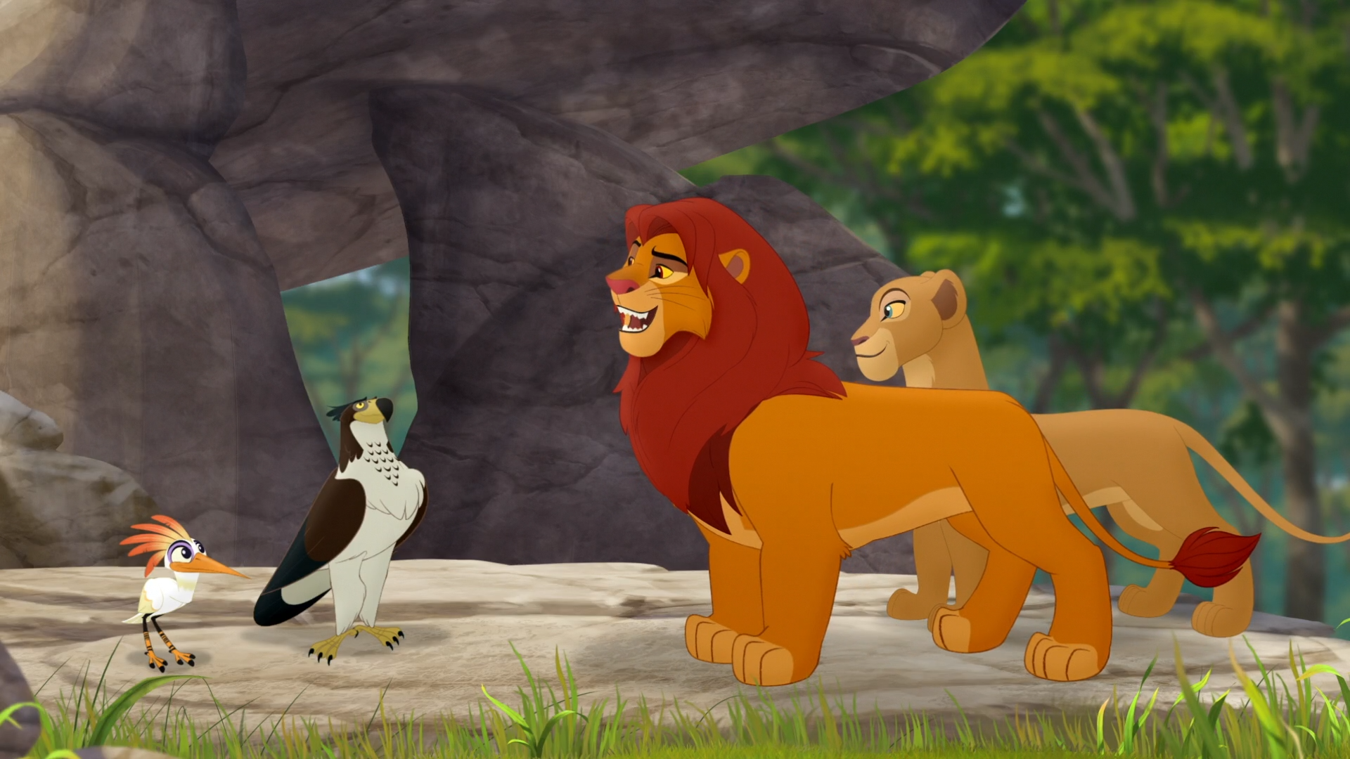 Simba continues that it is tradition for the hero to mentor a younger member of the Pride Lands. Kion nominates Ono to the position, and Simba accepts the suggestion. With business concluded, he and Nala begin to depart, but Hadithi stops them and requests that a ceremonial nest be built in his honor. Ono volunteers the Lion Guard to perform the service, and Kion assents.