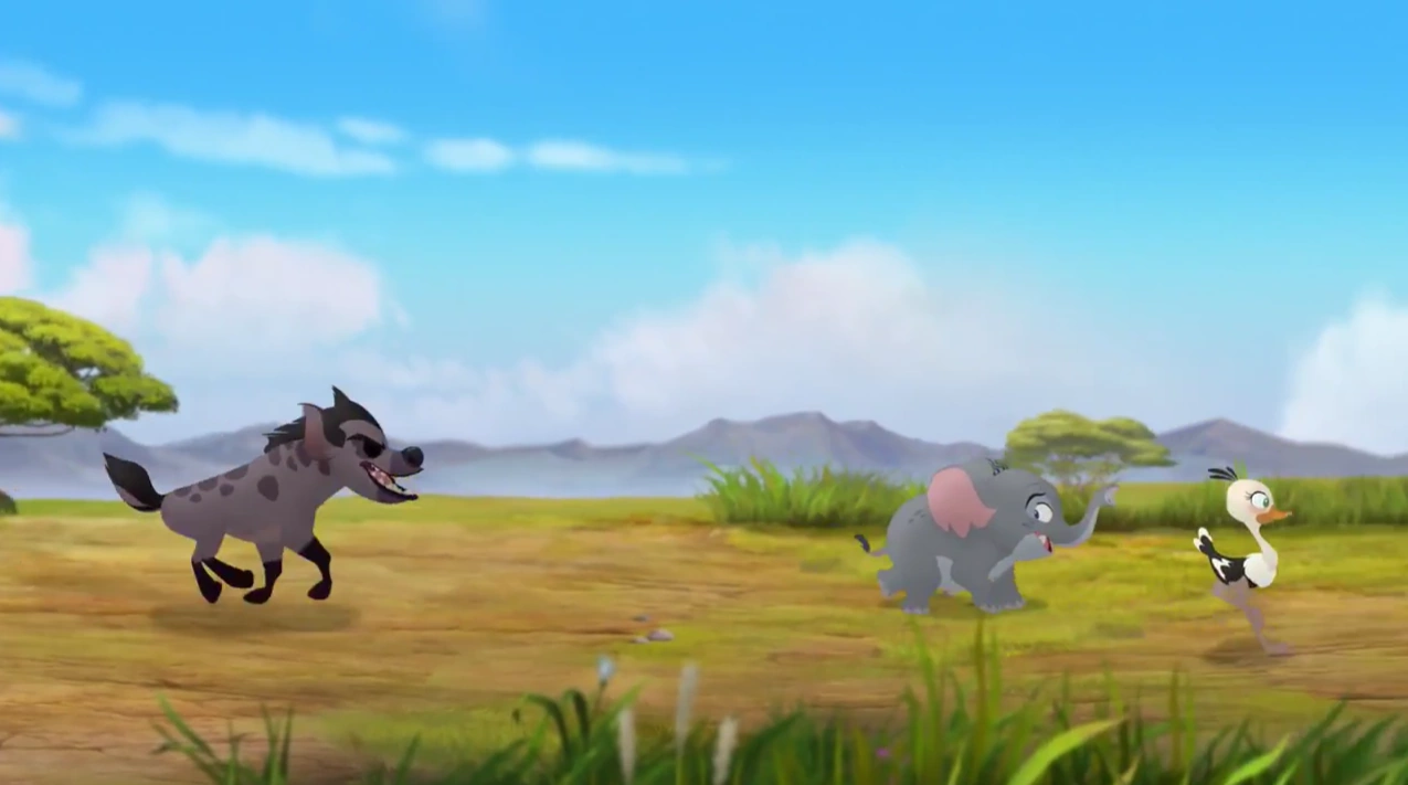 One day, a young ostrich named Kambuni and her friends were playing "Lion Guard," during which they pretended to be hyenas. This frightened some nearby Pride Landers and attracted the attention of the real Lion Guard. Upon learning that it was simply some little ones playing, Kion warned them about the dangers of pretending to be hyenas, and they vowed to never play in such a way again. They then invited the Guard to play with them, but Kion admitted that they had pressing matters elsewhere.