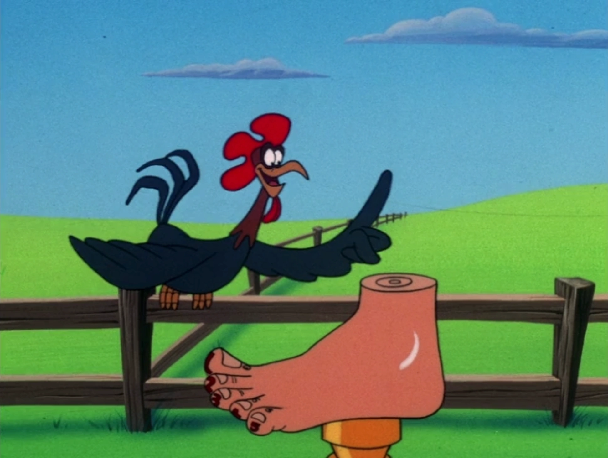 Rooster explains each toe of the "This Little Piggy" competition.