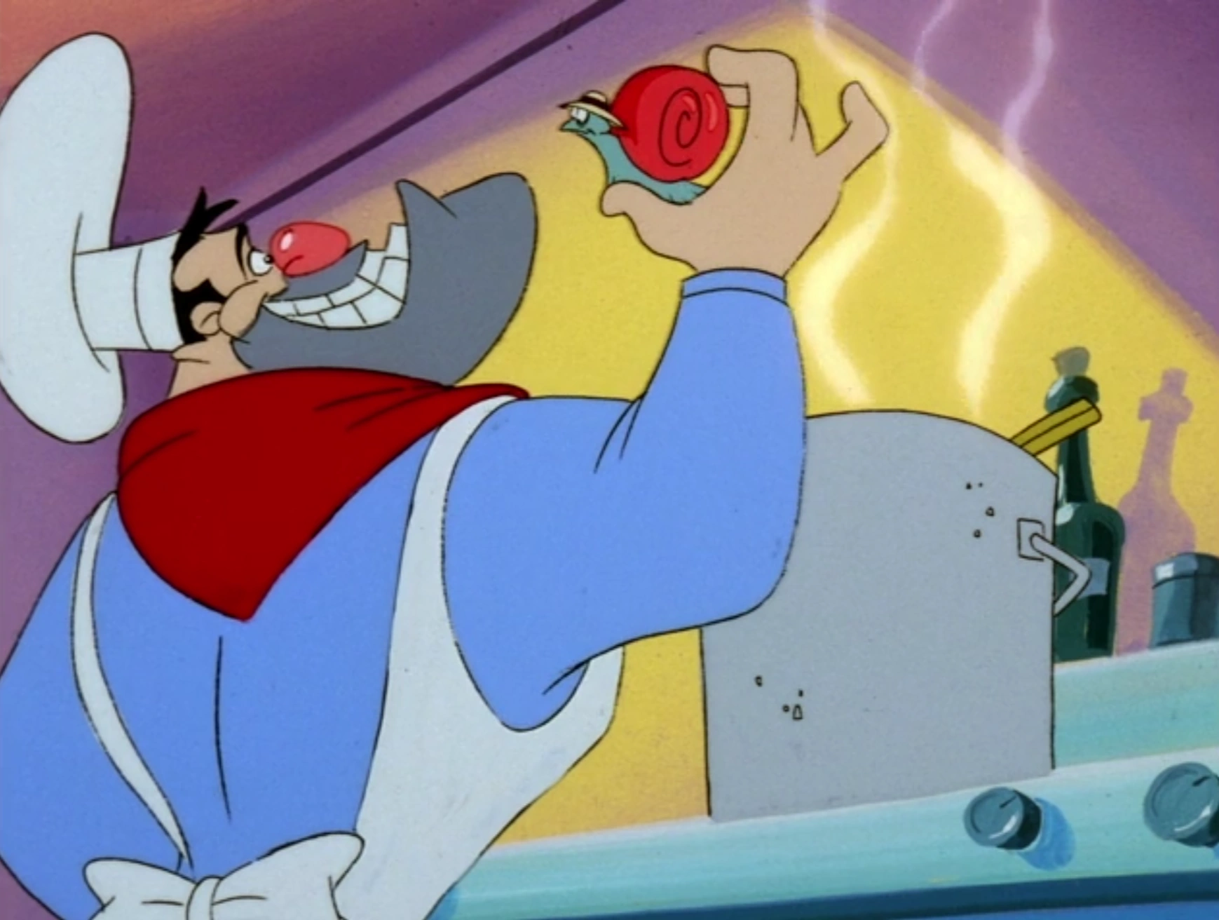 Speedy the Snail nearly gets cooked by Culinary Quint.