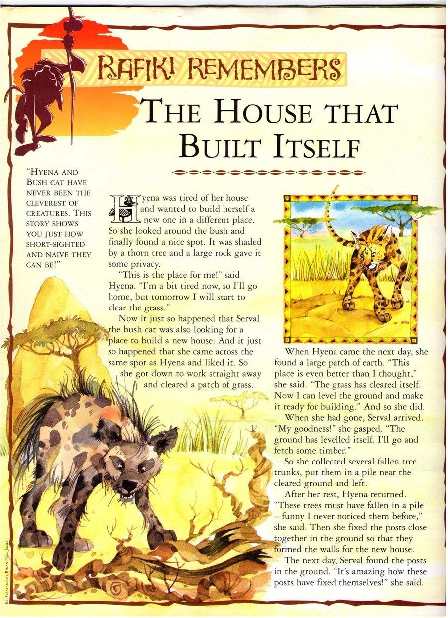 The House that Built Itself is a story from the Rafiki Remembers magazine collection. It was published in the 1990s as part of The Lion King: A Nature Fun and Learn Series.