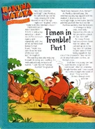 Timon in Trouble is a magazine story inspired by The Lion King. It was published in three issues of The Lion King: A Nature Fun and Learn Series as part of the Hakuna Matata magazine series.